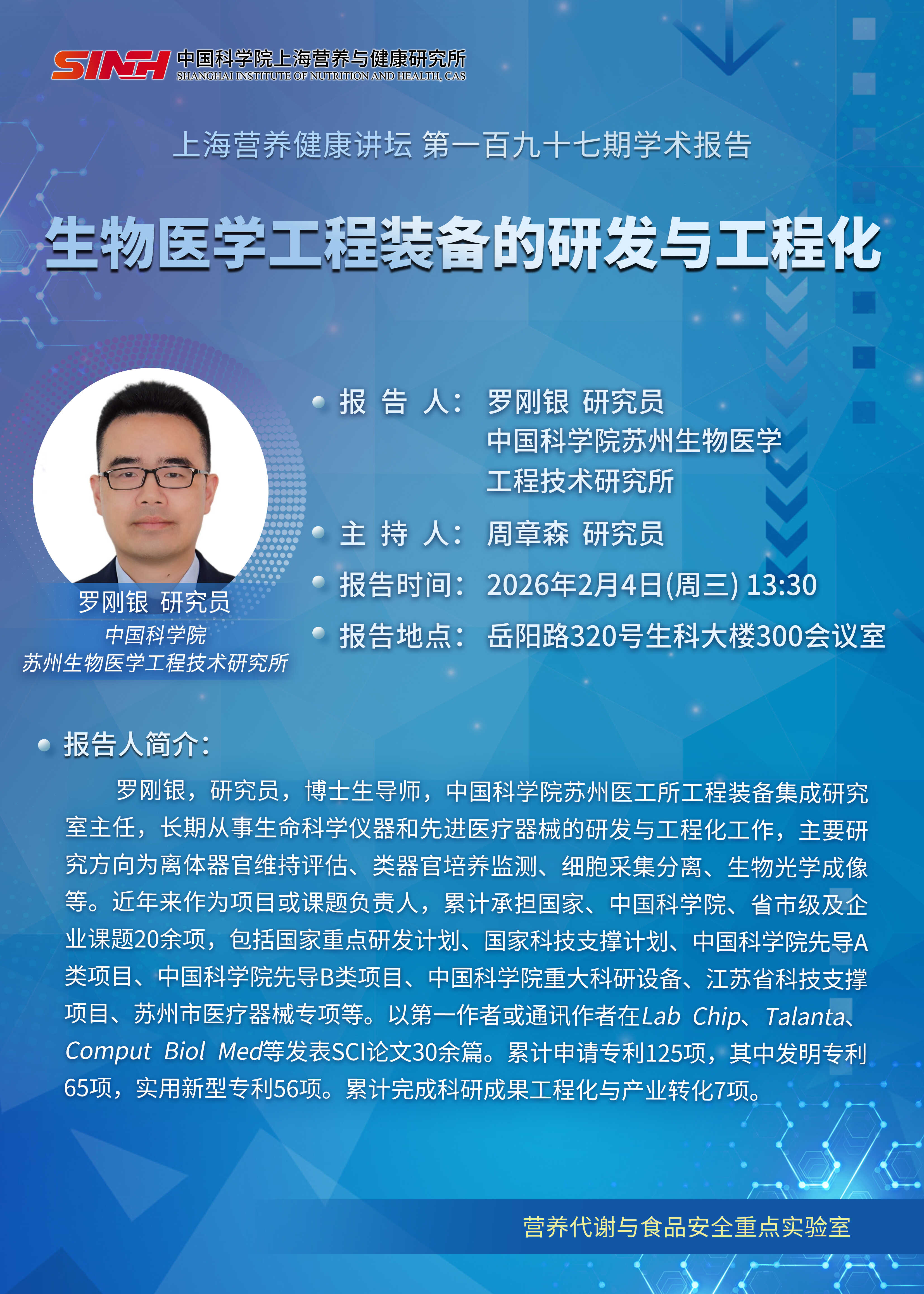 2月4日|生物医学工程装备的研发与工程化-上海营养健康讲坛