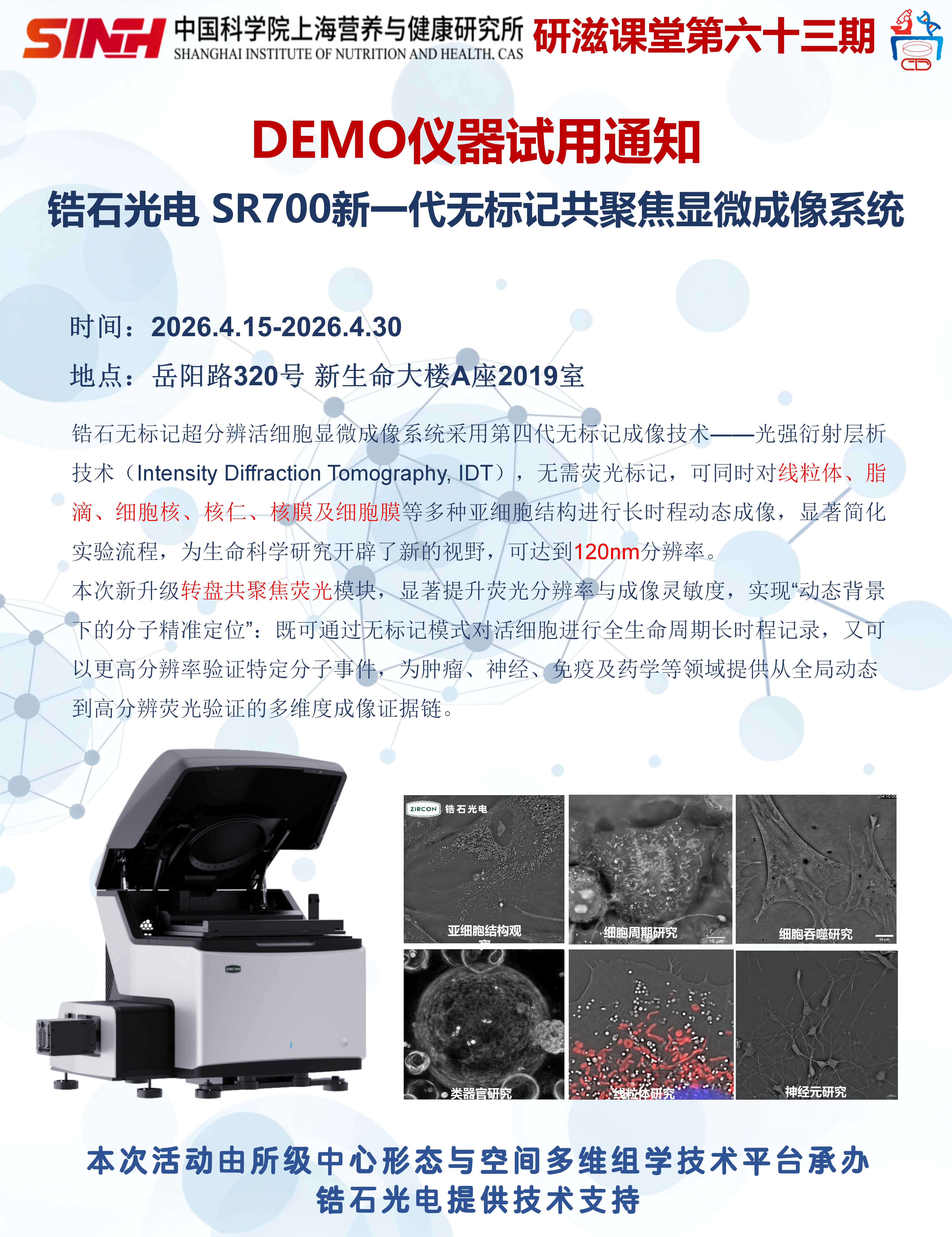 4月15日|【DEMO仪器试用】锆石光电SR700新一代无标记共聚焦显微成像系统-研滋课堂