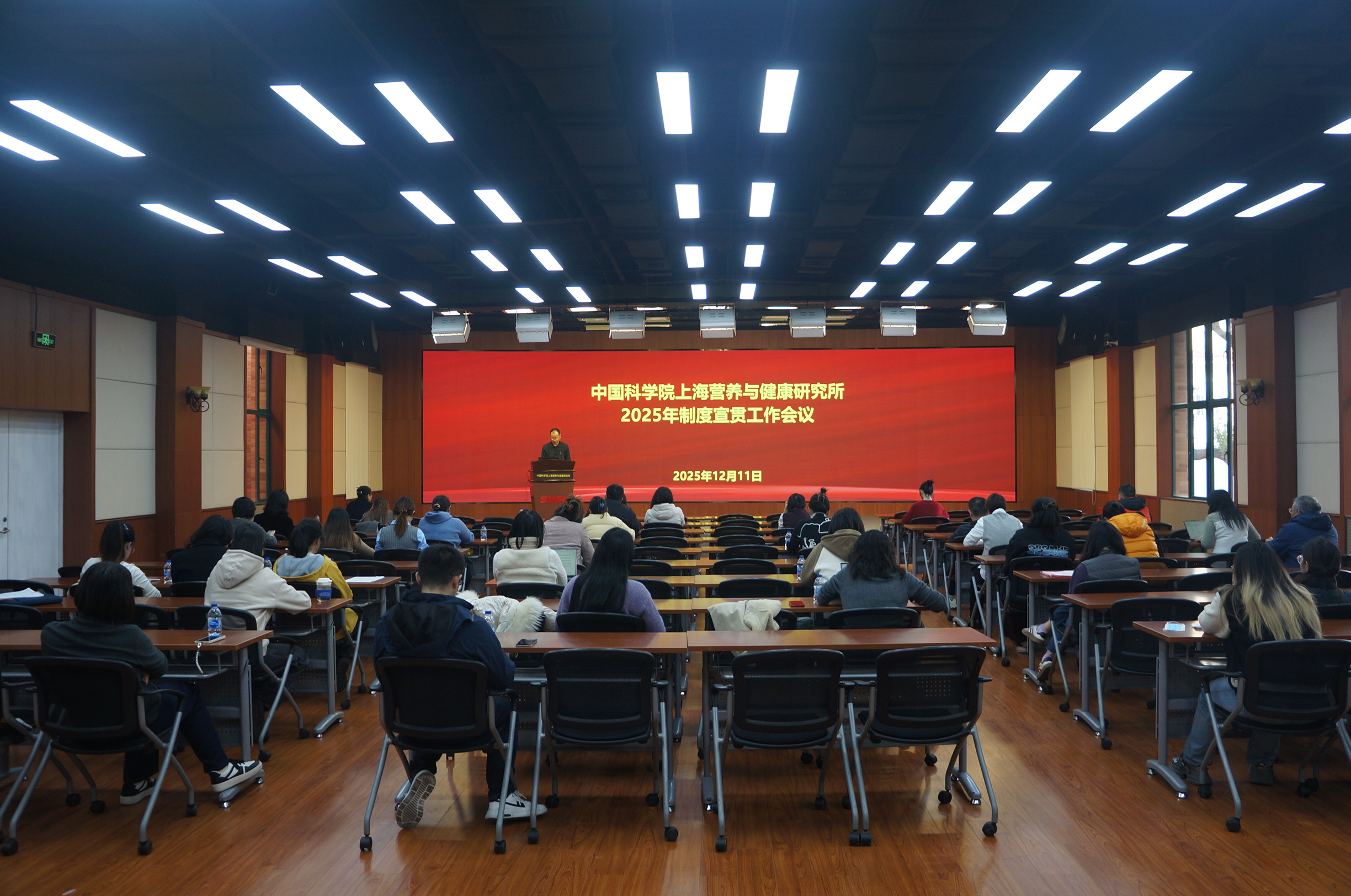 12月11日,中国科学院上海营养与健康研究所召开2025年度规章制度宣贯会议,研究所纪委书记曹永出席会议并致辞,各研究组、职能部门和支撑单元共计60余人参会。会议由所办公室副主任王瑾主持。